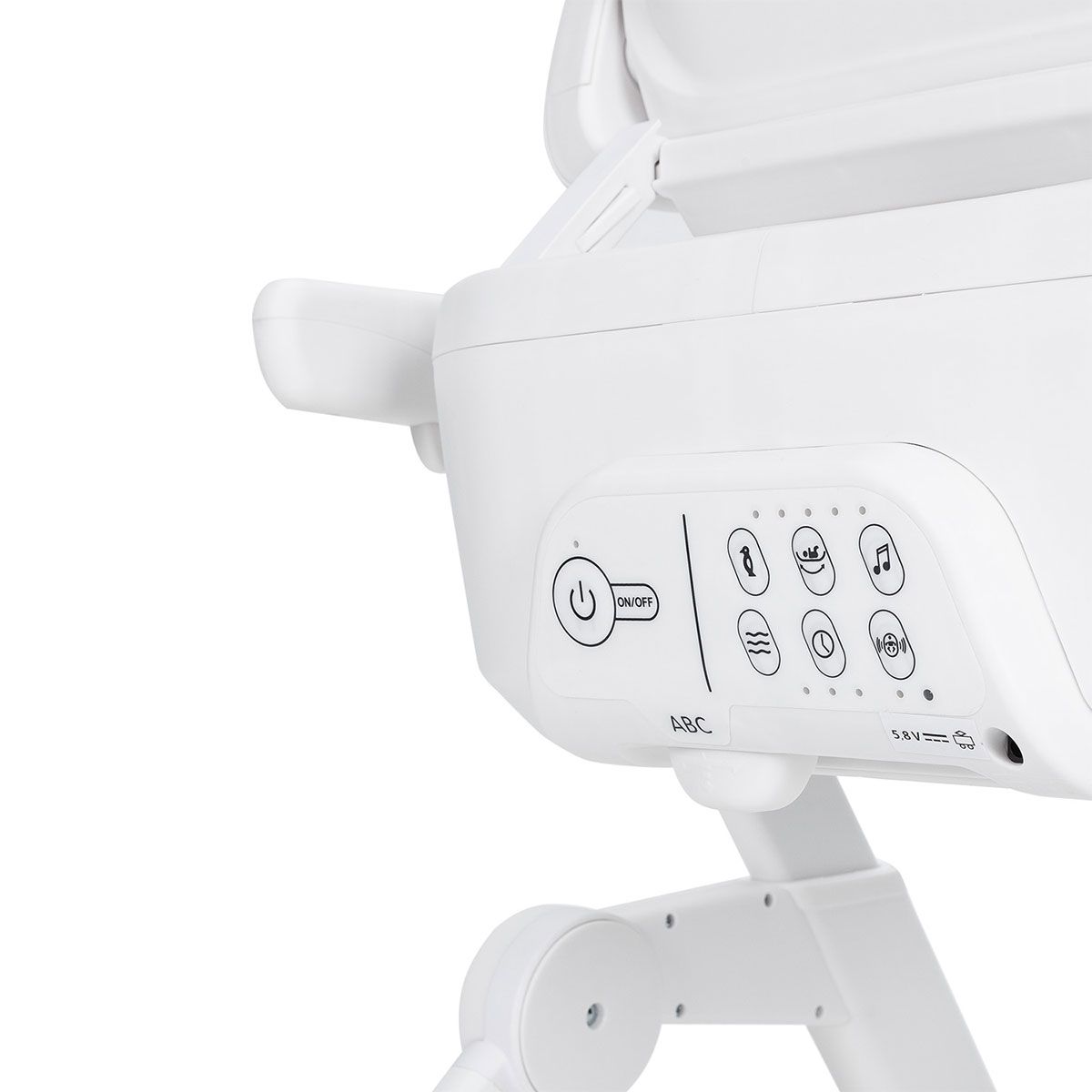- Люлеенето се управлява чрез дистанционно управление или от вградения сензорен панел, като са налични пет различни скорости на движение.