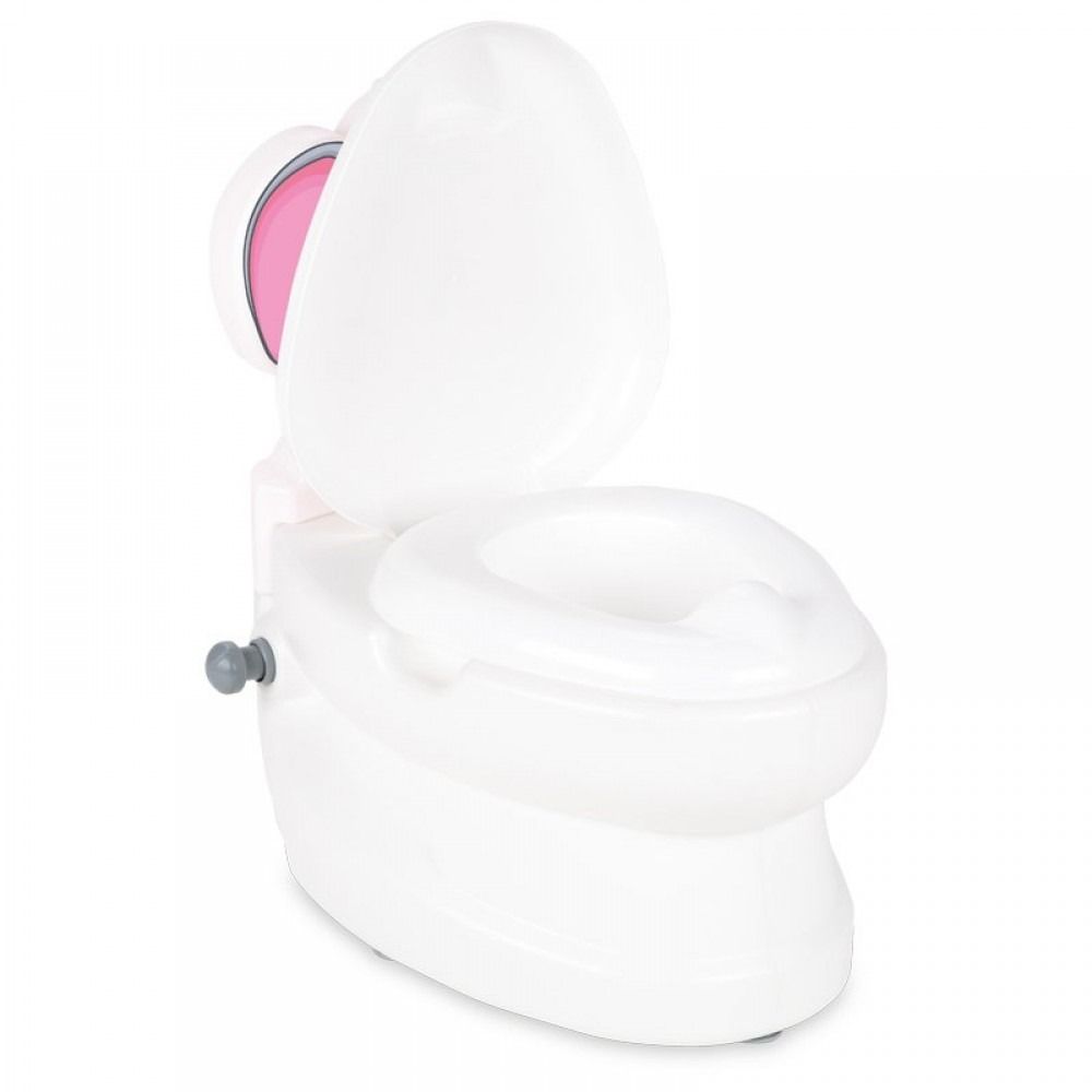 - Практичният капак може да се отваря и затваря, като наподобява истинска тоалетна и насърчава самостоятелността на детето.