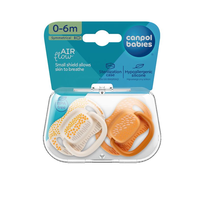 - Залъгалките са лесни за поддръжка, благодарение на модерната им кутия, което може да се използва както за съхранение, така и за бърза и удобна стерилизация в микровълнова фурна. Необходими са малко вода и две минути, за да сте сигурни, че залъгалките са хигиенично чисти.
