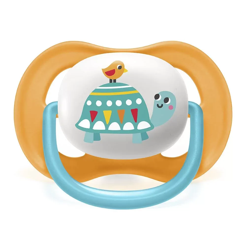 Комплект от 2 броя ортодонтични залъгалки, Ultra Air Happy 6-18m+, Philips AVENT - надпис Пингвин и Костенурка