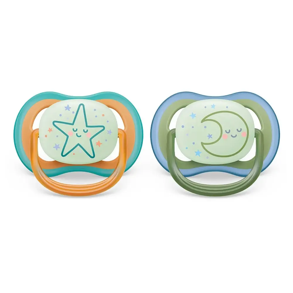 Комплект от 2 броя ортодонтични залъгалки, Ultra Air Night 18m+, Philips AVENT - Звезда и Луна