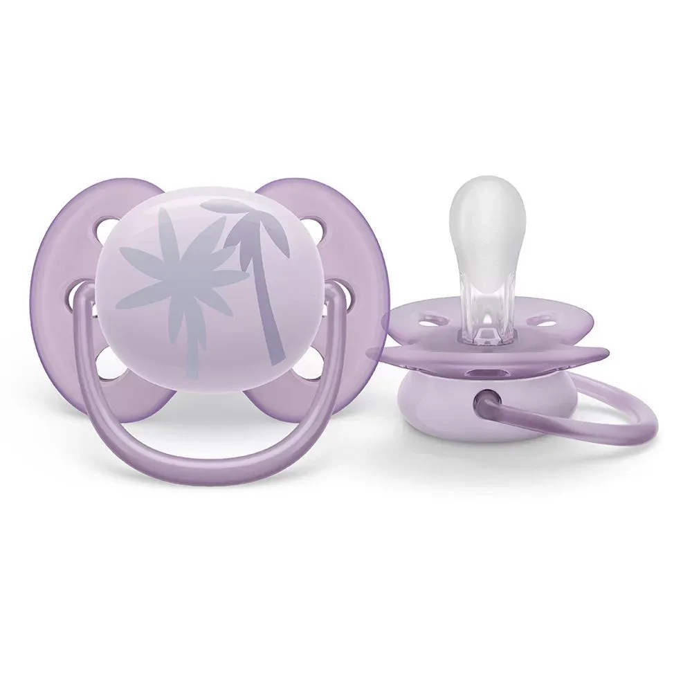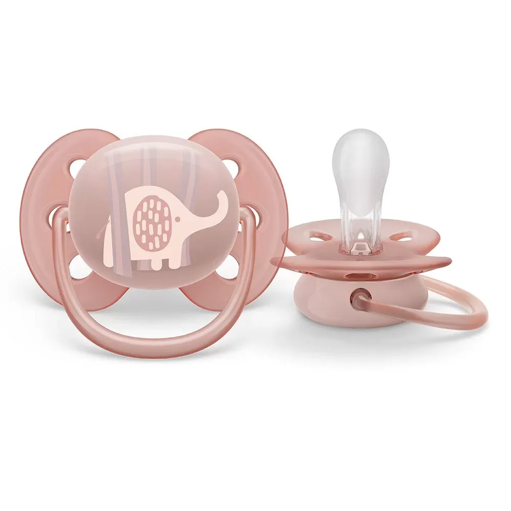 Комплект от 2 броя ортодонтични залъгалки, Ultra Soft 0-6м, Philips AVENT - Слонче и Палми - момиче