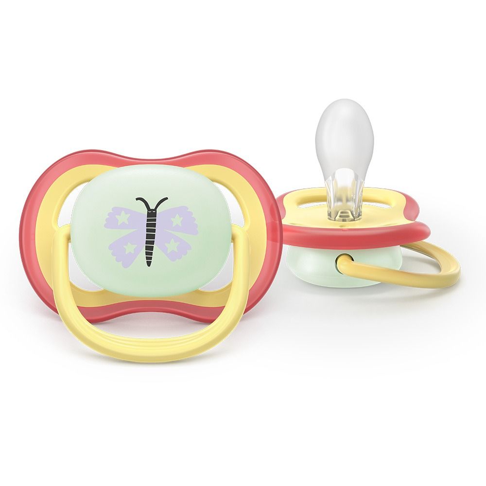 Комплект от 2 броя светещи ортодонтични залъгалки,Ultra Air NightTime 0-6m, Philips AVENT - Пеперуда и гъсеница