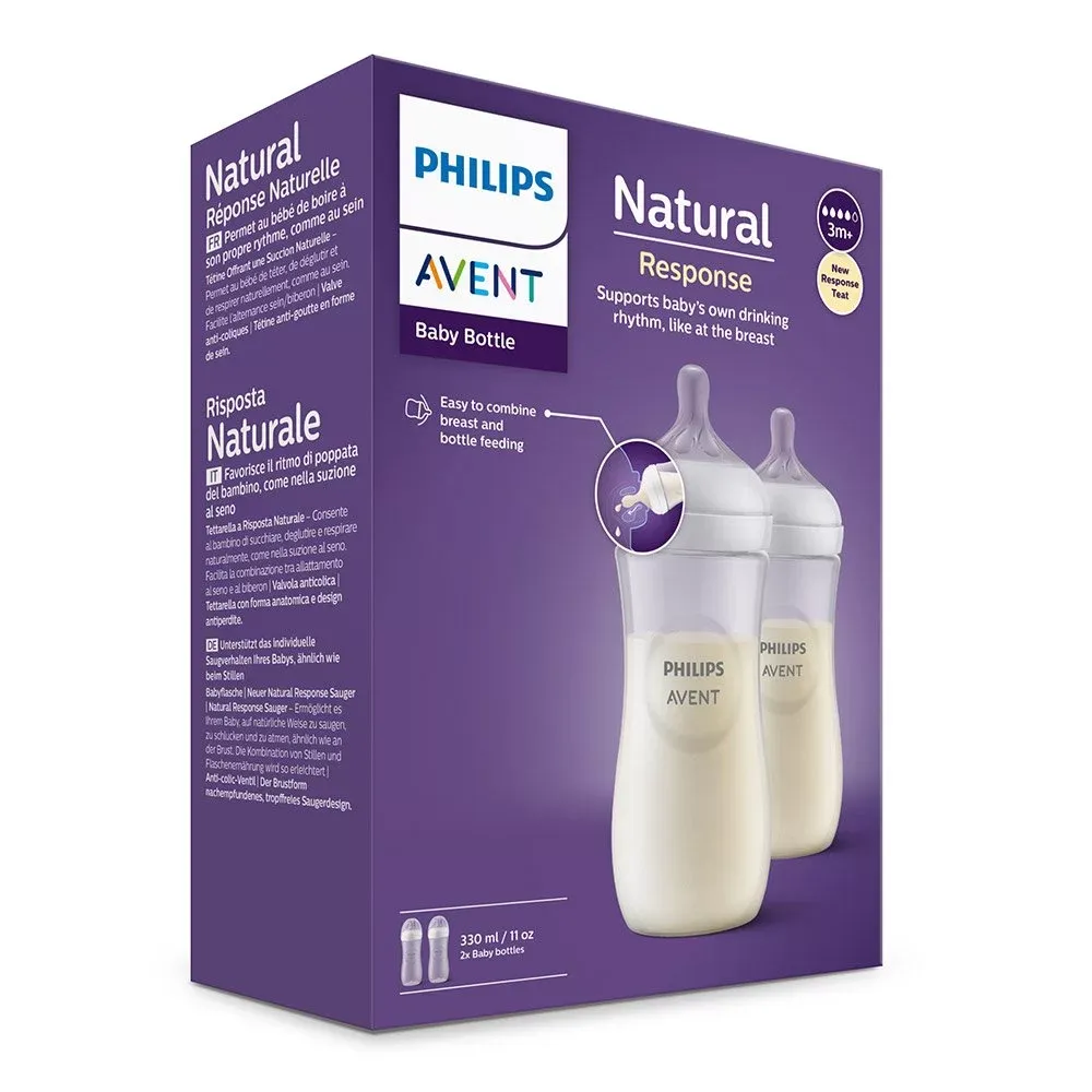 Комплект за хранене от 2 броя шишета Natural Response с биберон 3м+, 330мл - Philips Avent