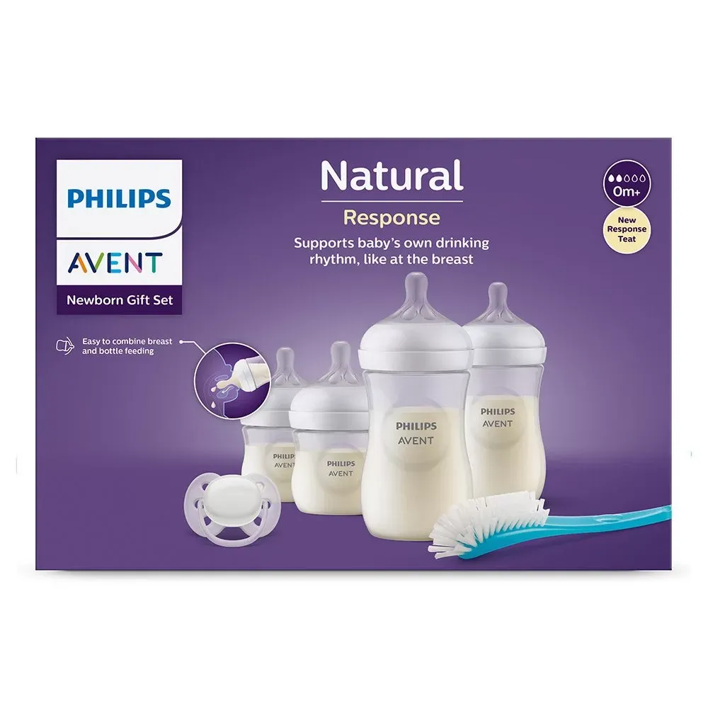 Комплект за новородено с 4 шишета за хранене Natural Response, залъгалка Ultra Soft и четка за почистване Philips AVENT