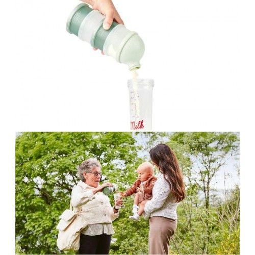 - Контейнерите са практично решение за предварително измерени порции адаптирано мляко, готови за бърза и лесна подготовка на храната.