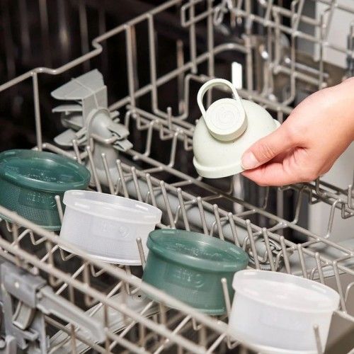 - Подходящи са за измиване на ръка или в съдомиялна машина, както и за стерилизация при температура до 80°C.