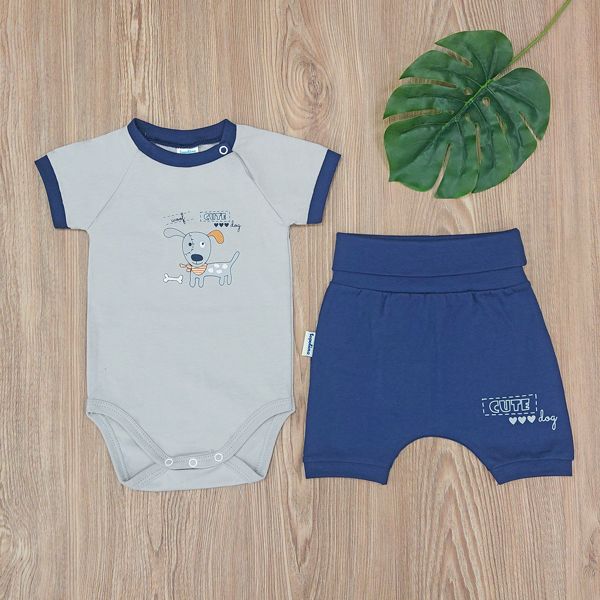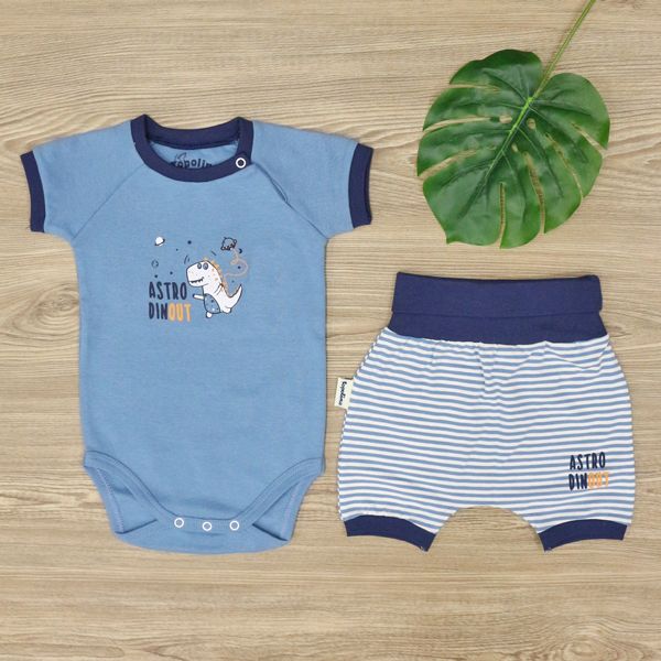 - Състои се от боди с къс ръкав и къси панталони с широк ластик.