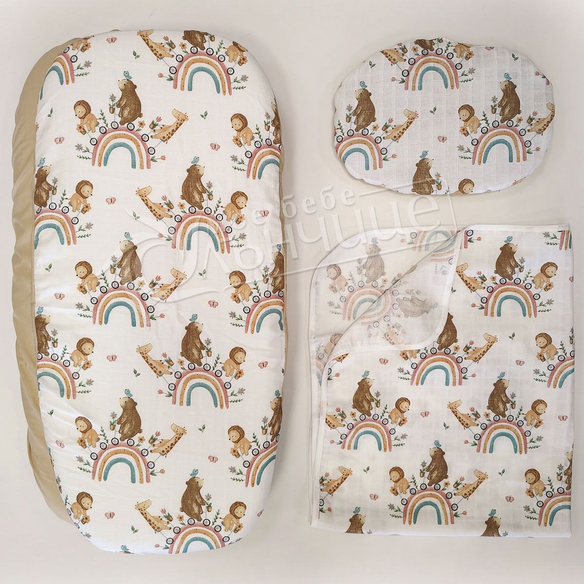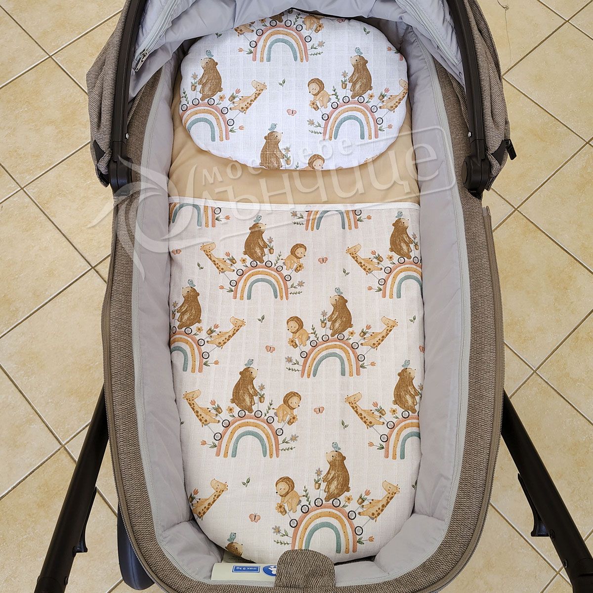 - 2 броя чаршаф с ластик - 78/38см (1 муселин и 1 ранфорс)