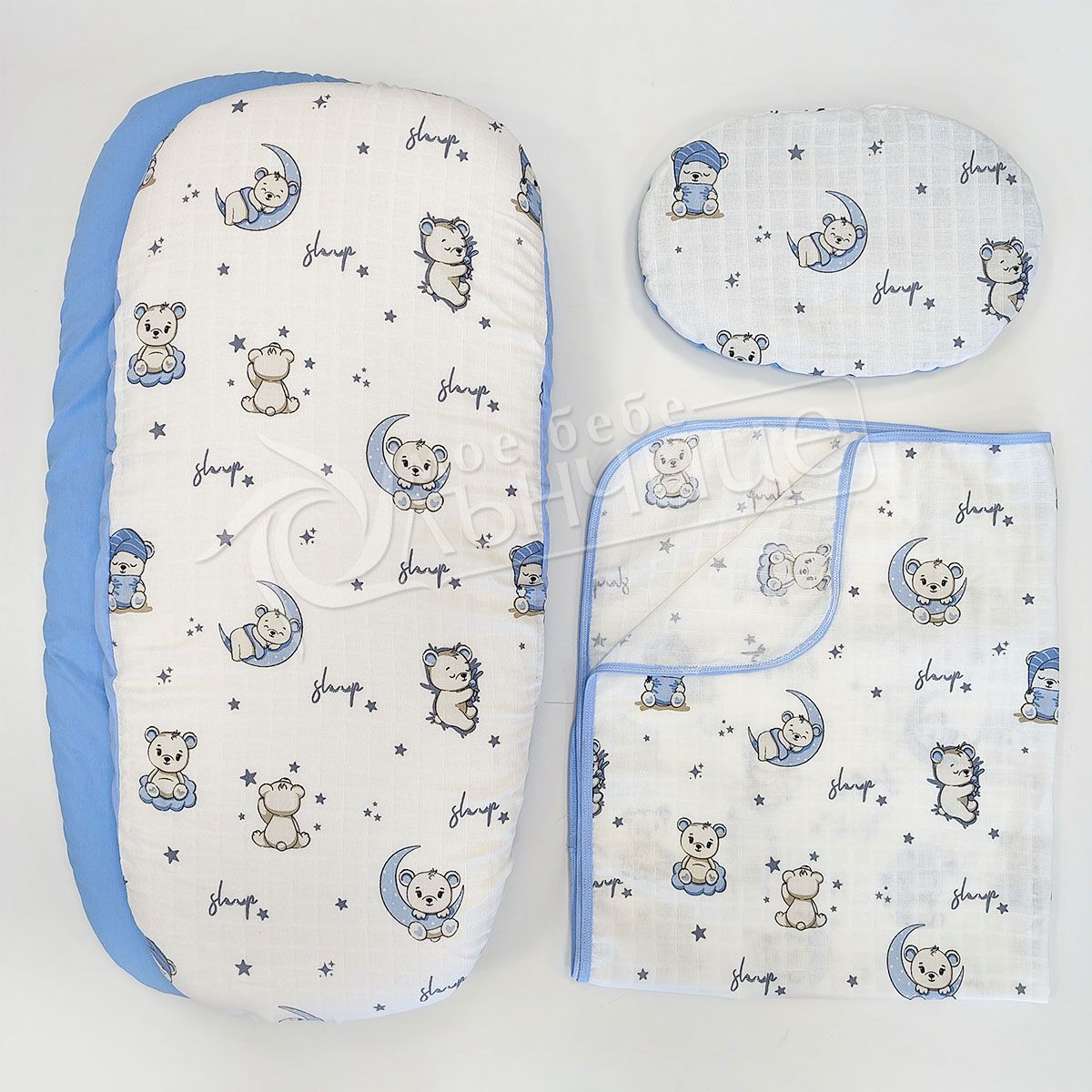 - Специален муселинов чаршаф против изпотяване с ластик.