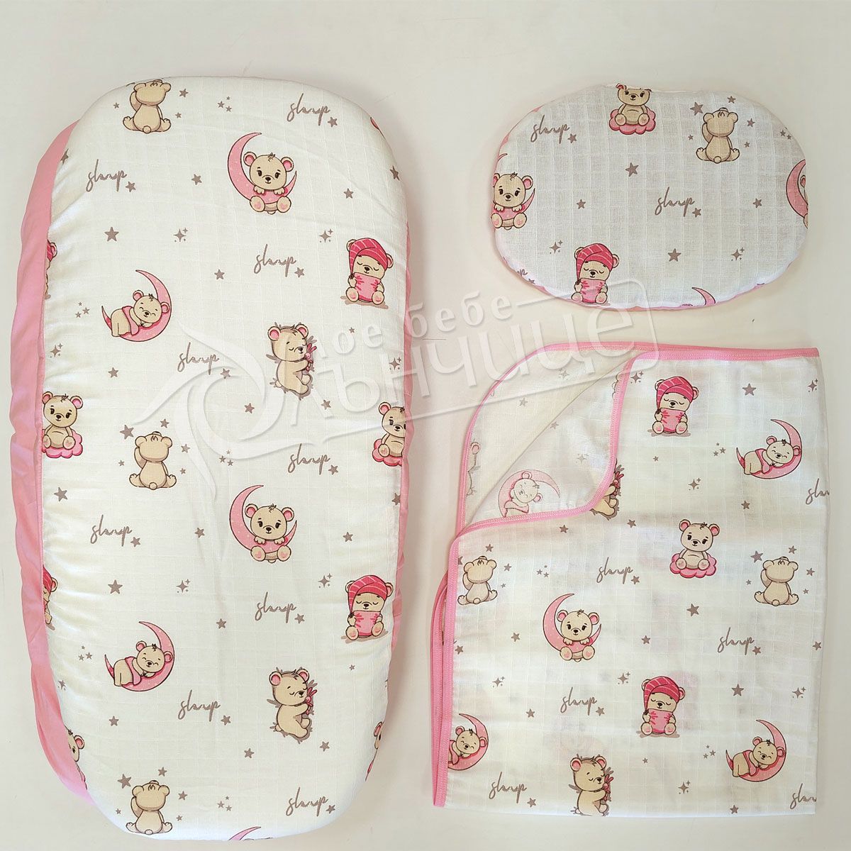 Летен комплект за количка Sleep Pink - Муселин
