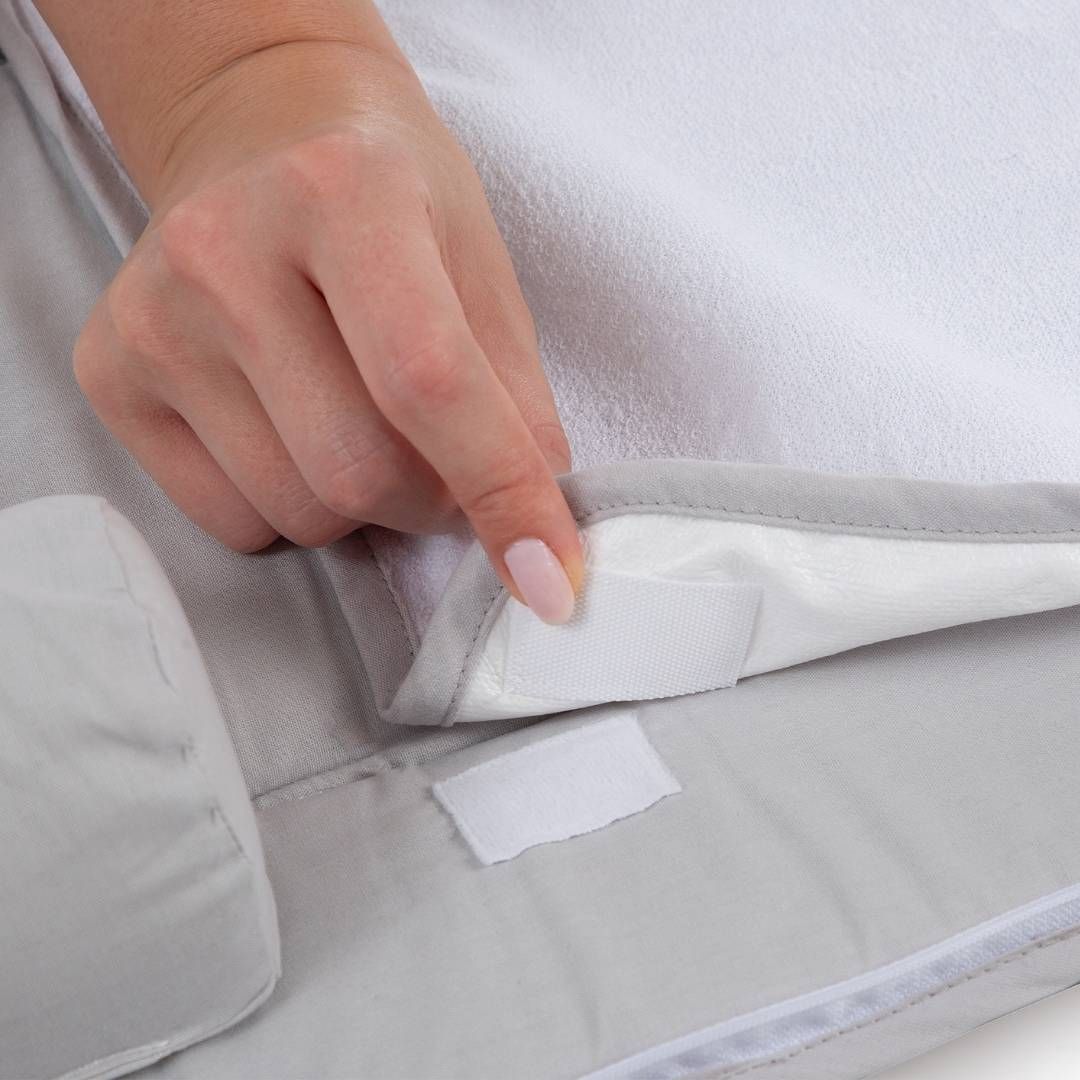 Меките странични бордове оформят защитена зона, която подпомага спокойния сън на бебето и предпазва от неволно обръщане. Идеално за кратки дрямки у дома или по време на гости.