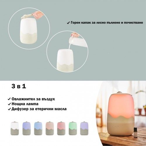 - Функция „нощна лампа“ - свети в 7 различни цвята за успокояваща атмосфера.