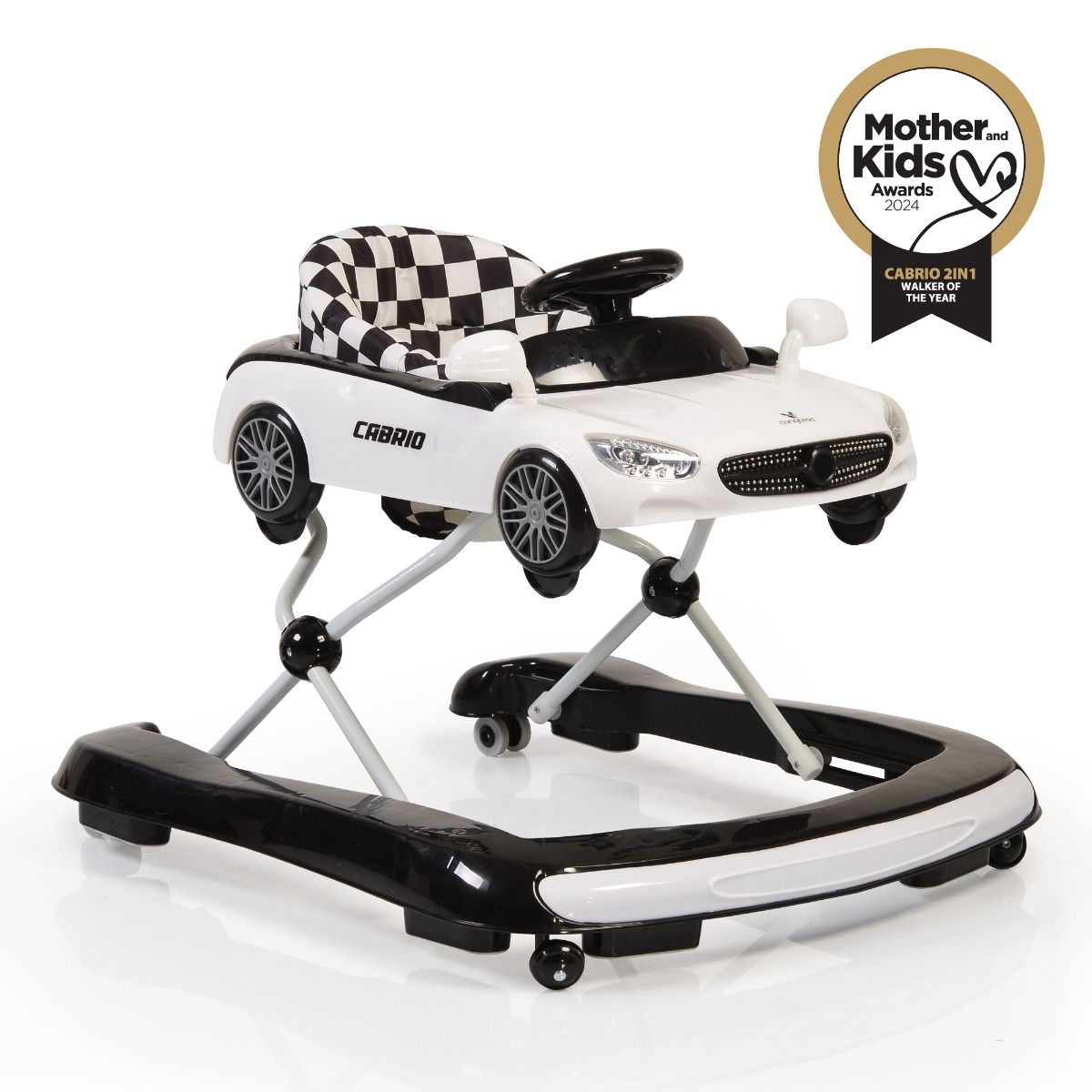 - Cabrio 2в1 е иновативна детска проходилка, която прави първите стъпки на вашето дете по-безопасни и вълнуващи.