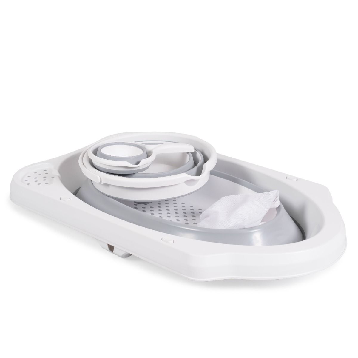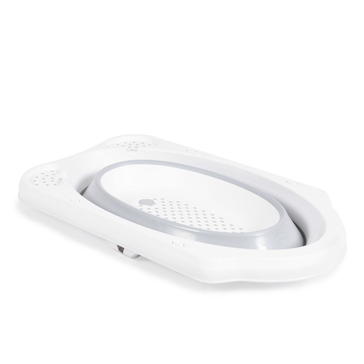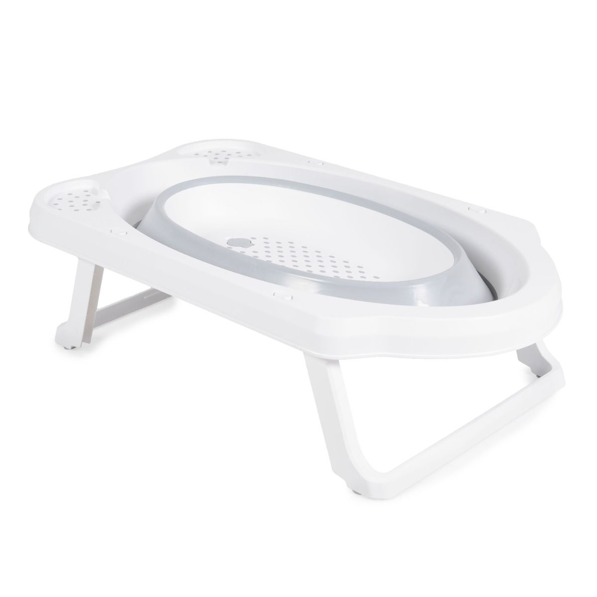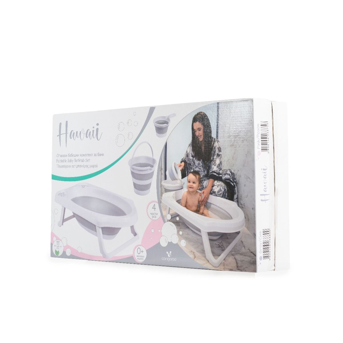 - сгъваема вана с противоплъзгаща част на дъното, отделение за сапун и шампоан, отвор за отичане и противоплъзгащи се тапи на крачетата;