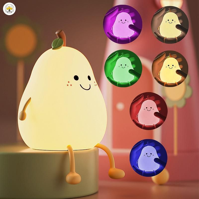 - Силиконовата нощна лампа BabyHome „Круша“ съчетава функционалност и сладък дизайн, като предлага топла светлина и 7 сменящи се цвята