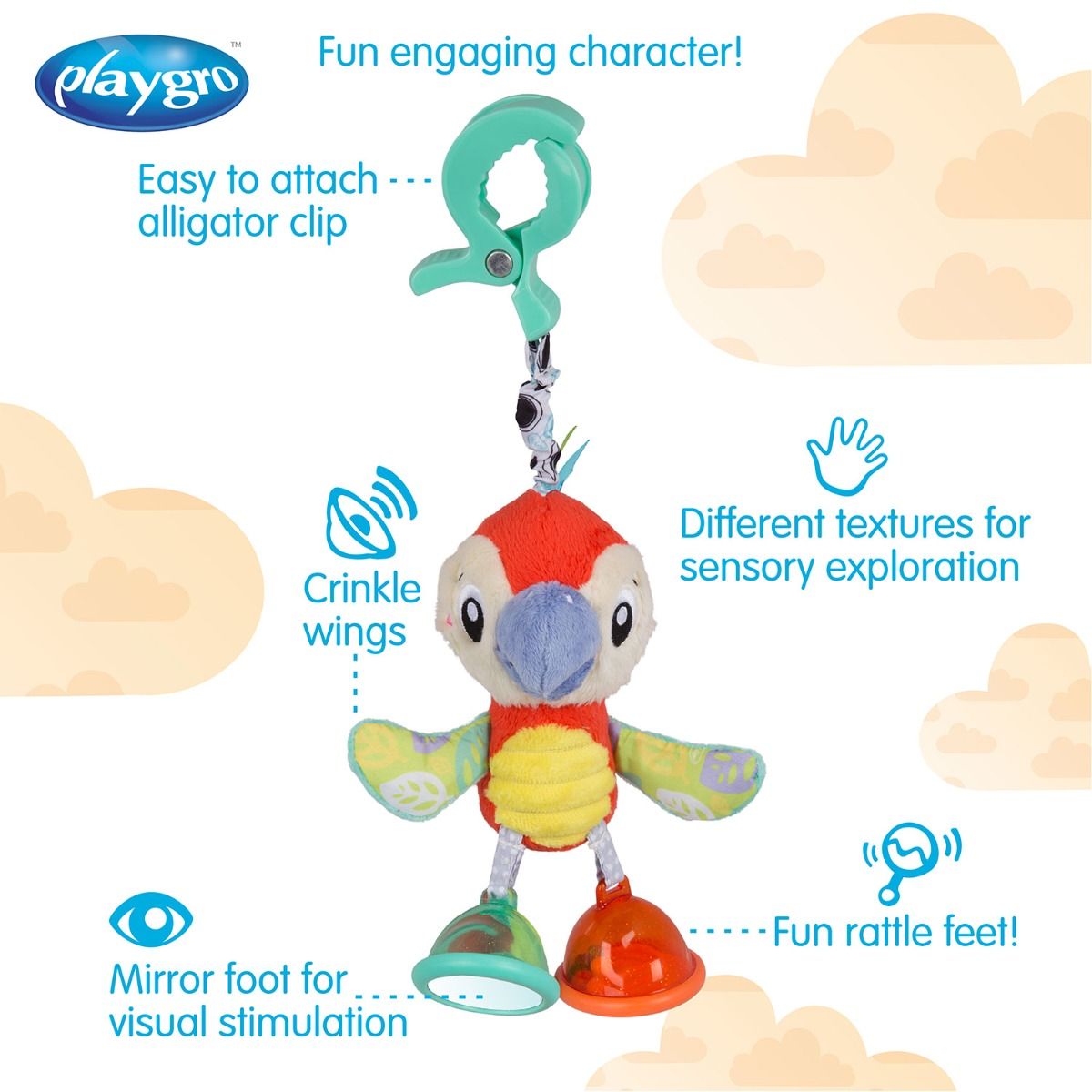 - Играчката има щипка за лесно закачане както на количка при разходка на открито, така и на столчето за кола при път.