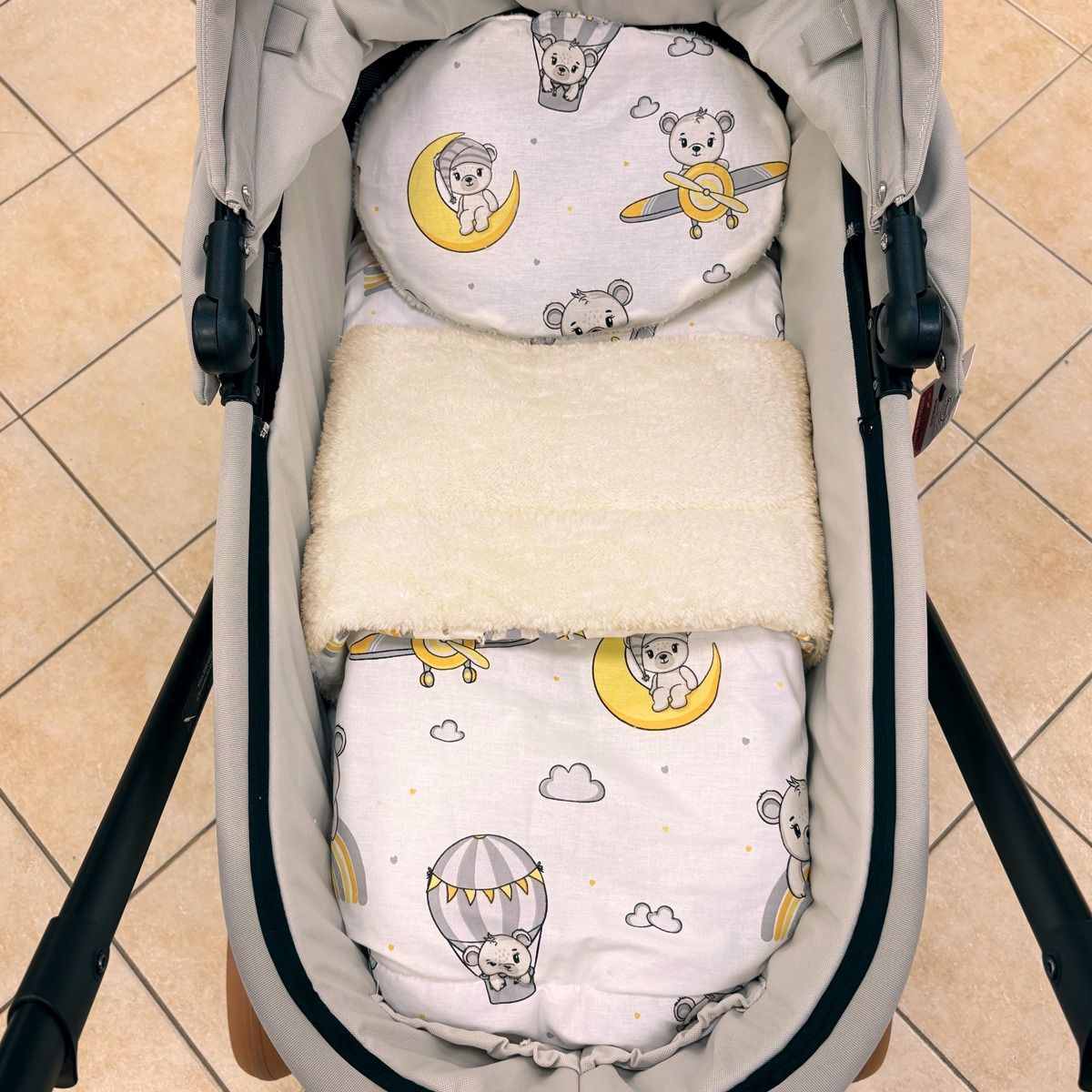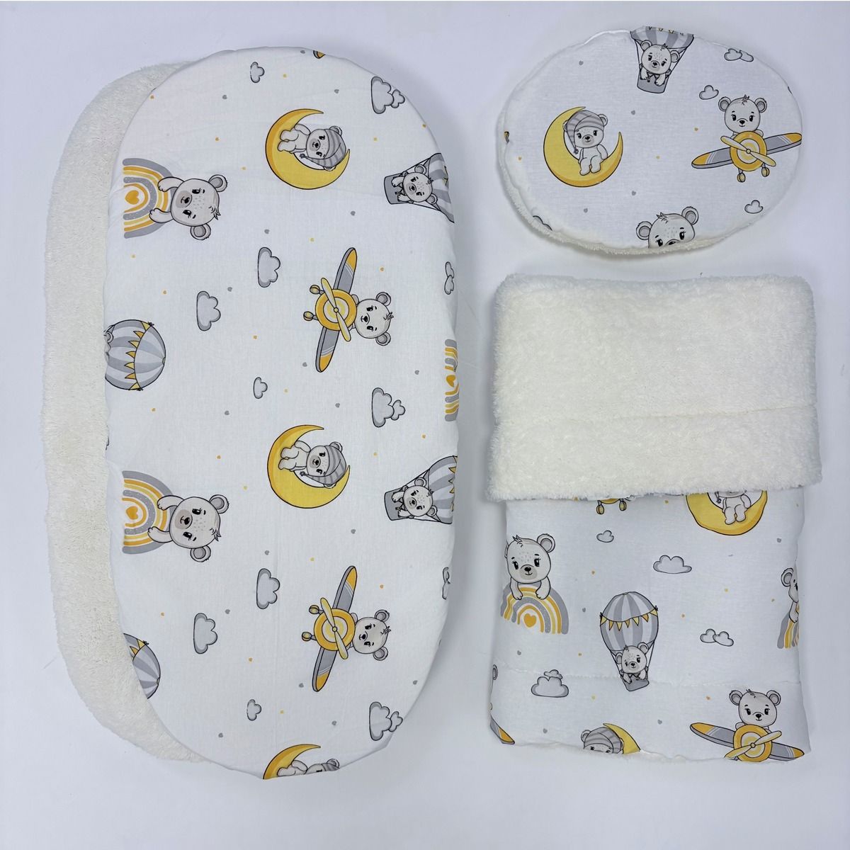- Вътрешната част на възглавничката, завивката и чаршафчето Soft touch са изработени от мекa кохавлия, а памучното чаршафче и лицето на възглавничката и завивката от 100% памучен ранфорс.