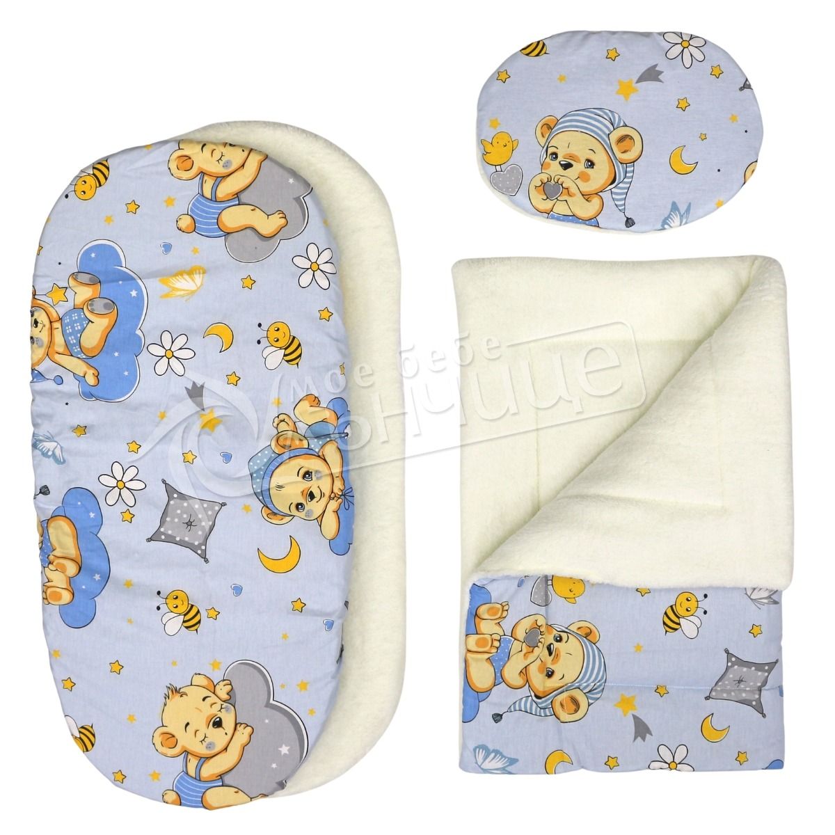 - Вътрешната част на възглавничката, завивката и чаршафчето Soft touch са изработени от мекa кохавлия, а памучното чаршафче и лицето на възглавничката и завивката от 100% памучен ранфорс.