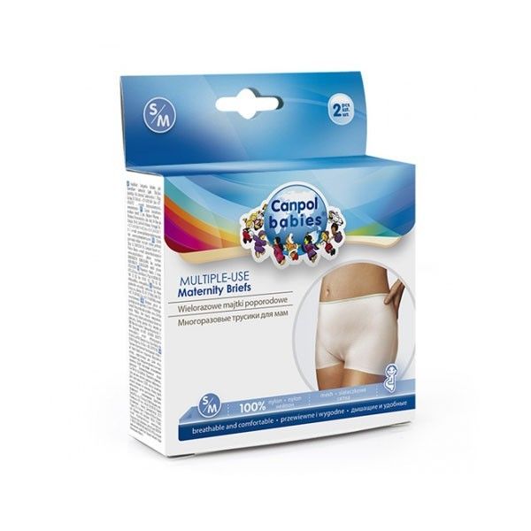 - Следродилни бикини за многократна употреба - CANPOL - Предназначени за периода след раждането, изработени са от мрежест плат с много трайни еластични влакна, които дават възможност за свободен въздушен поток. Осигуряват гъвкавост, изключителен комфорт и предотвратяват дразненето на кожата. Кутията съдържа 2 бр. следродилни бикини, като се предлагат в размери XS, S/M и L/XL.