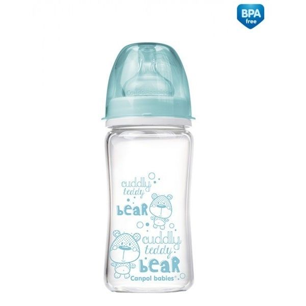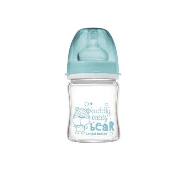 - Стъклено шише за хранене против колики CANPOL - Антиколик шише с прозрачно стъкло, високо устойчиво на температурни разлики. Изработен от естествен силикон биберон с бавен поток и антиколикова система. Има запечатващ диск, който превръща шишето в контейнер за съхранение на храна. Размер: 120 мл, възраст: 0м+. Предлага се в три цвята.