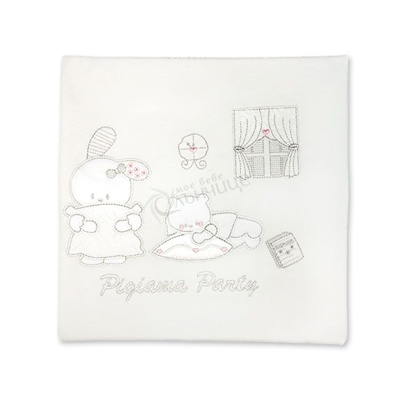 - Предлага се в бял цвят с любопитна дантелена апликация на мечета.