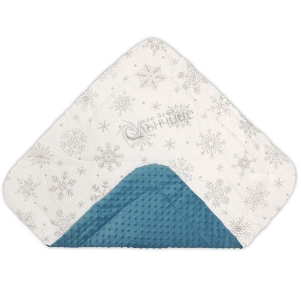- Чаровен дизайн в интересна цветова комбинация - отвътре пелената е с бяла основа и нежни снежинки, а отвън в модерния десен Deep Ocean.