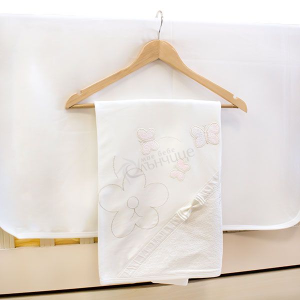 - Пелената се предлага в бял цвят и вариант с деликатен розов акцент.