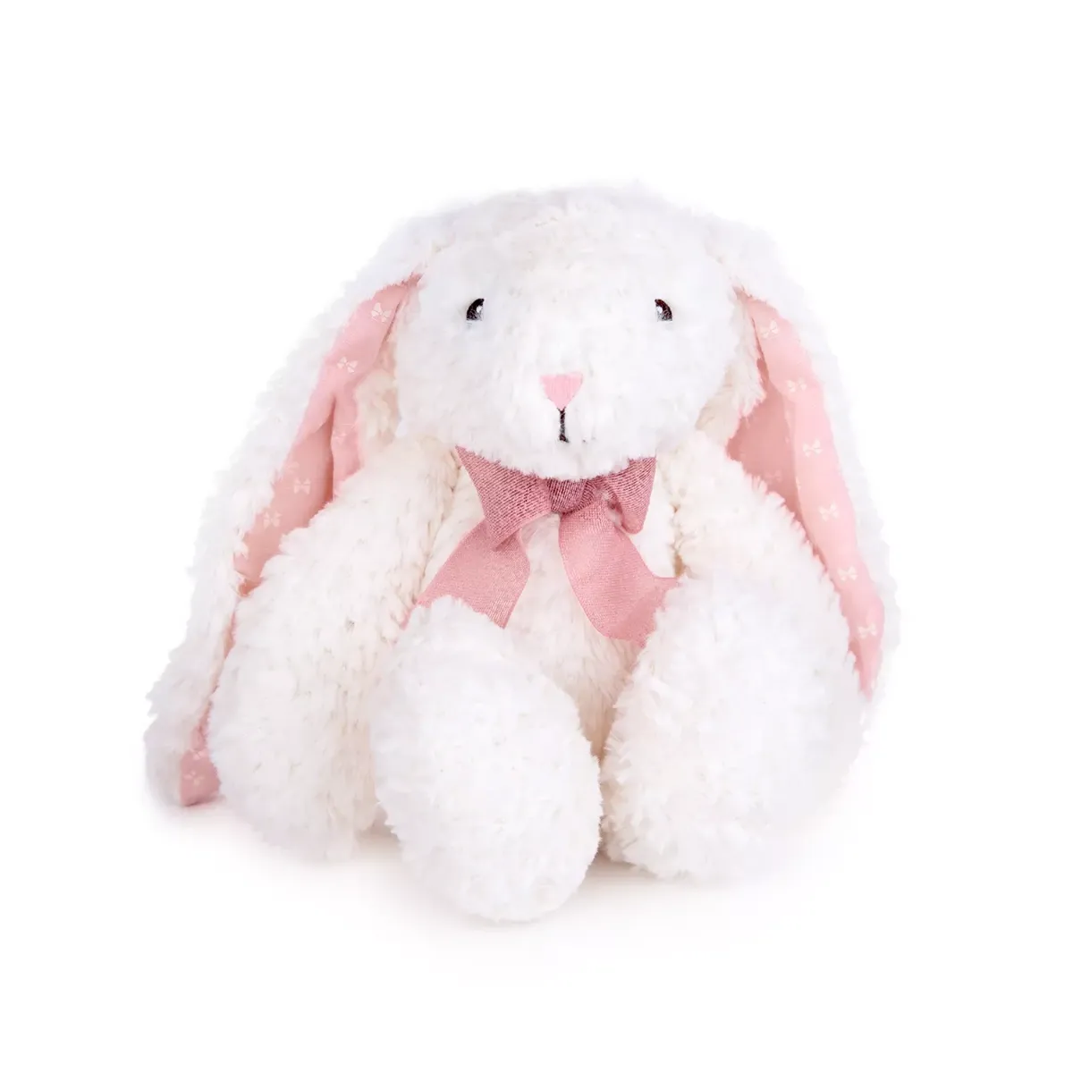 - Дългите ушички са подплатени с мек розов плат с нежни бели мотиви.