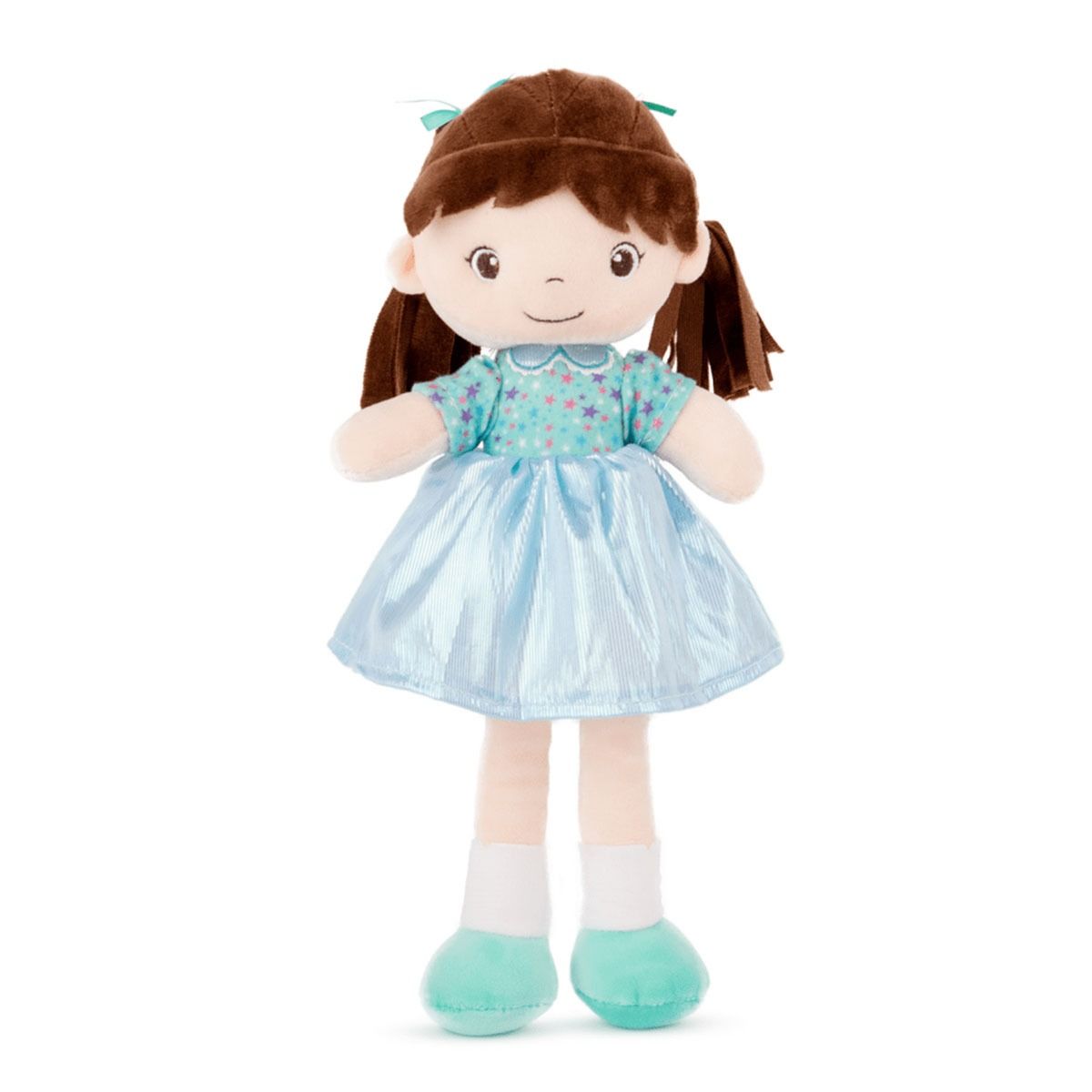 Плюшена кукла с цветна рокля - синя