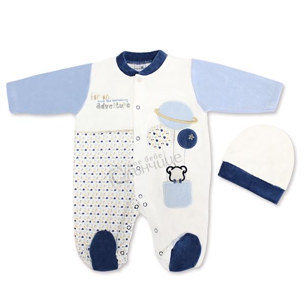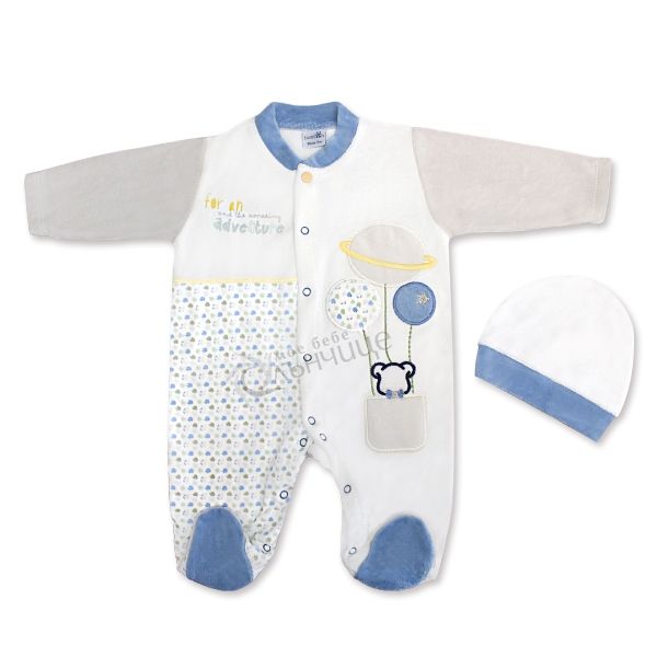 - Плюшен гащеризон и шапка, изработени от висококачествени материали.