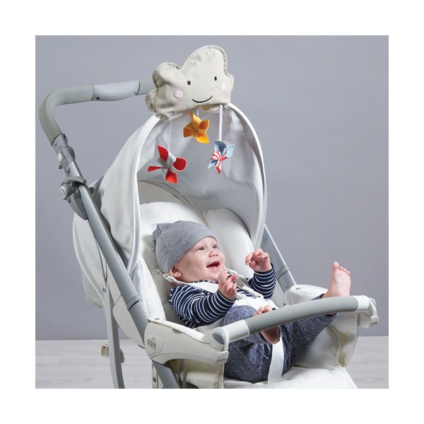 - Колоритните и висящи форми за забавление развиват сетивата на бебето, когато се разхождате заедно.