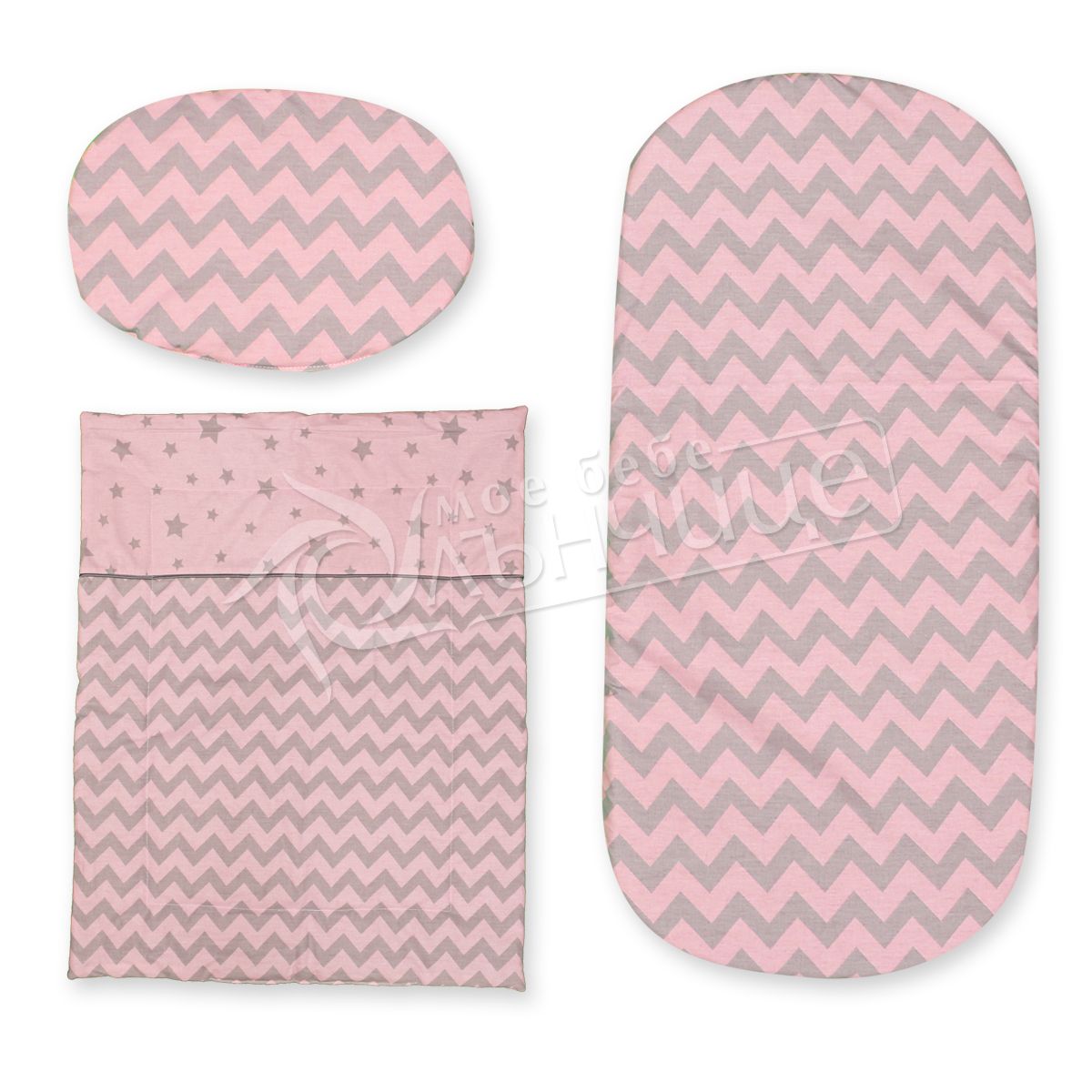 - Комплектът се състои от три части - мека двулицева завивка, двулицева възглавничка и памучно чаршафче.