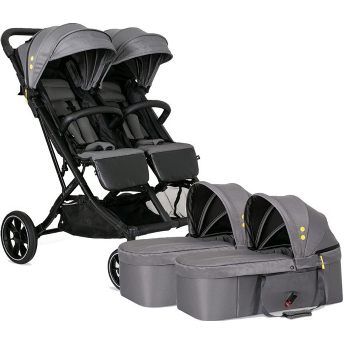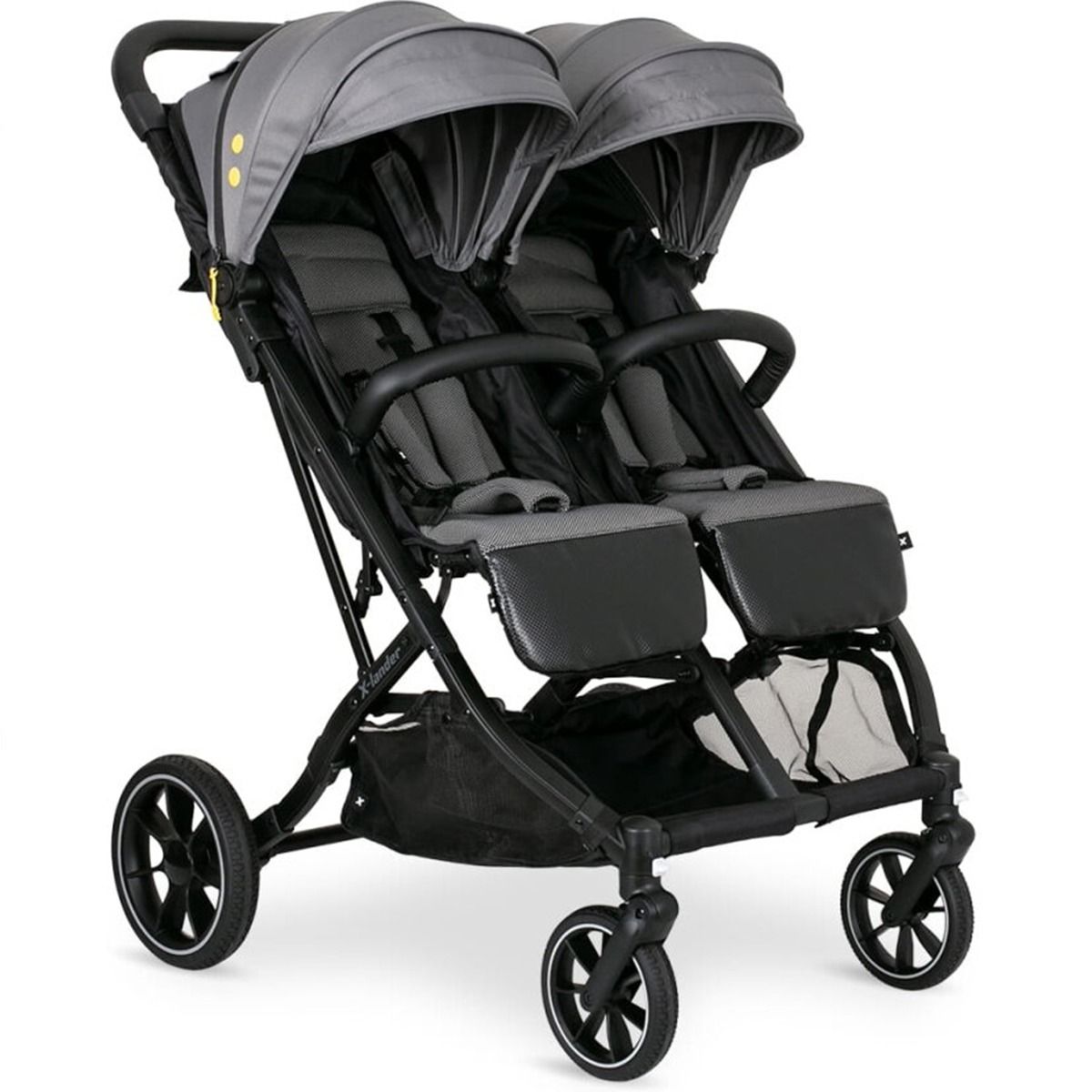 Моделът за близнаци X-DOUBLE предлага комбинация от функционалност и стил, като съчетава в себе си комфорт за децата и удобство за родителя. В новата си версия количката е с по-големи колела и усъвършенствана тапицерия, което я прави още по-стабилна, маневрена и комфортна. Въпреки че е двойна, X-DOUBLE е компактна и лесна за управление, а сгъването ѝ е бързо и практично.