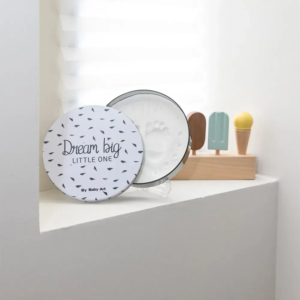 Магична кутия за отпечатък на ръчички или крачета Dream big - Baby Art Ви позволява да съхраните мил отпечатък от мъничките ръчички или крачета на вашето бебе – бързо, лесно и чисто.