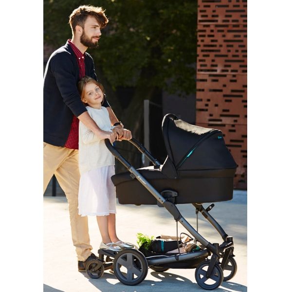 - Докато Вашето бебе седи в количката, Вашето по-голямо дете може да се вози комфортно в изправена позиция.