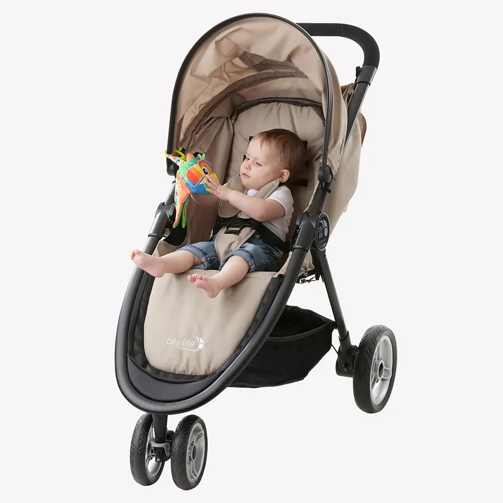 - Удобната щипка-халка позволява лесно захващане към рамка на количка.