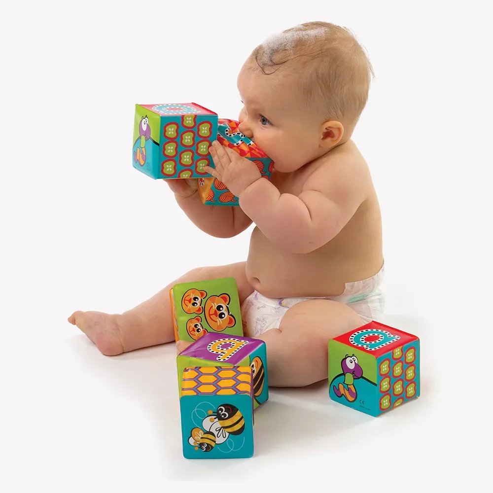 - Кубчетата са изработени от меки, безопасни материали, идеални за гризане, стискане или игра във вода.