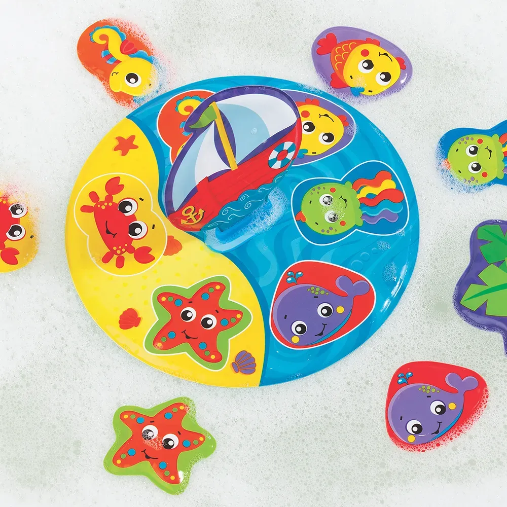 Пъзел за баня Платноходка - Playgro е едновременно пъзел и стикер игра, създаден да превърне времето за къпане в забавно приключение!