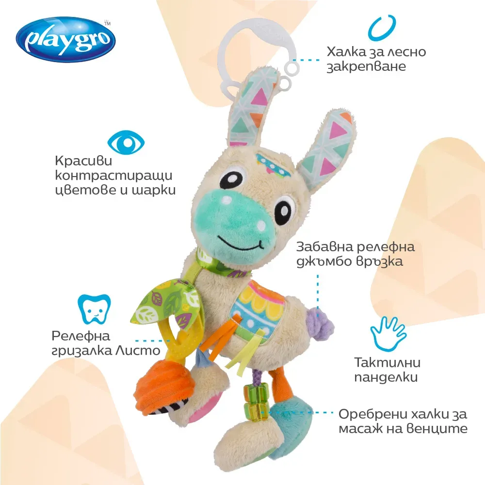 Плюшена активна играчка Лама Лупе - Playgro е очарователна активна играчка, създадена да подпомага развитието на сетивата и моториката на бебето още от първите дни.