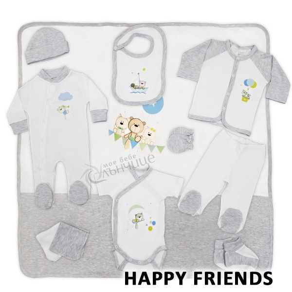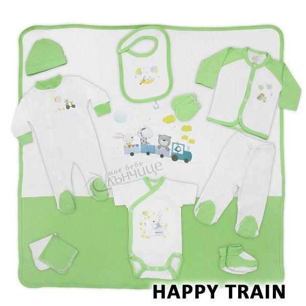 Промоционален сет Комплект за изписване 11 части Happy + 2 броя динамични залъгалки 0-3 м Lovi