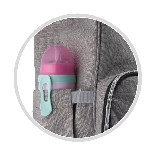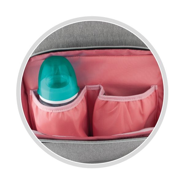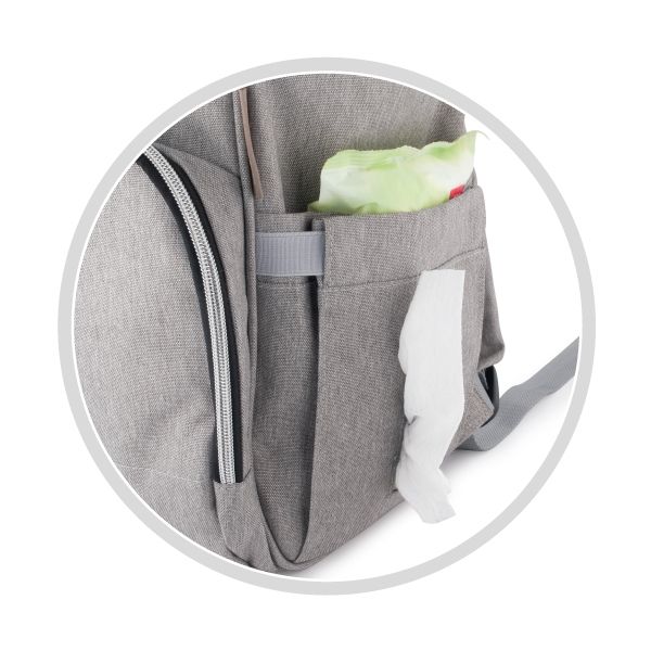 - От двете страни на раницата има специални джобове - единият е за шишета, а другият е специално отреден за мокри кърпички.