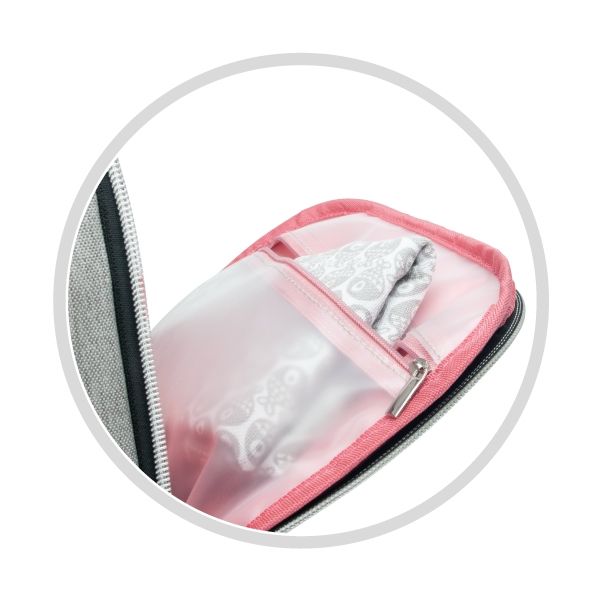 - Специално отделение за мокри дрешки или памперси - с цип.