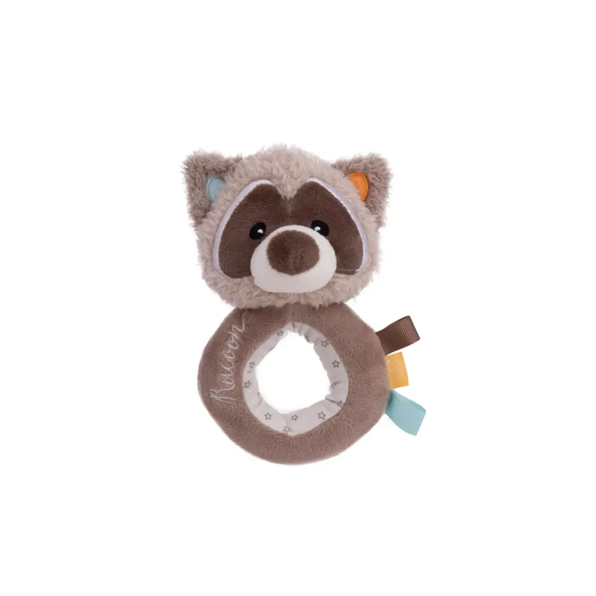 - Компактна и лека бебешка ринг дрънкалка във форма на ракун