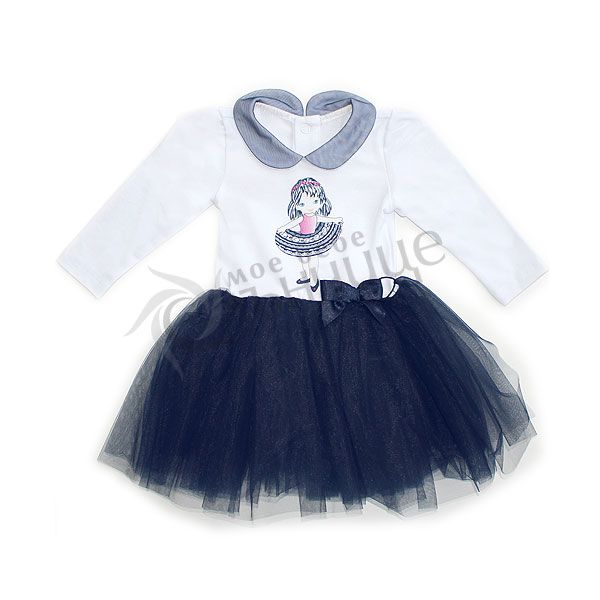 - Роклята е дълъг ръкав, якичка и копчета тик-так на гърба.