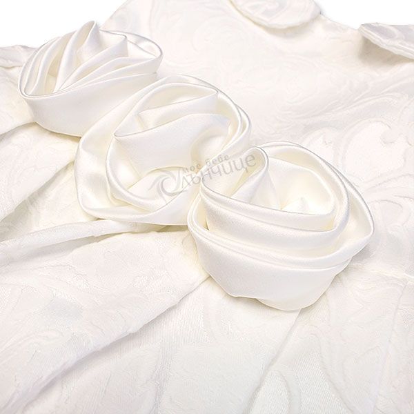 - Предлага се в нежен бял цвят с чаровна украса от рози.