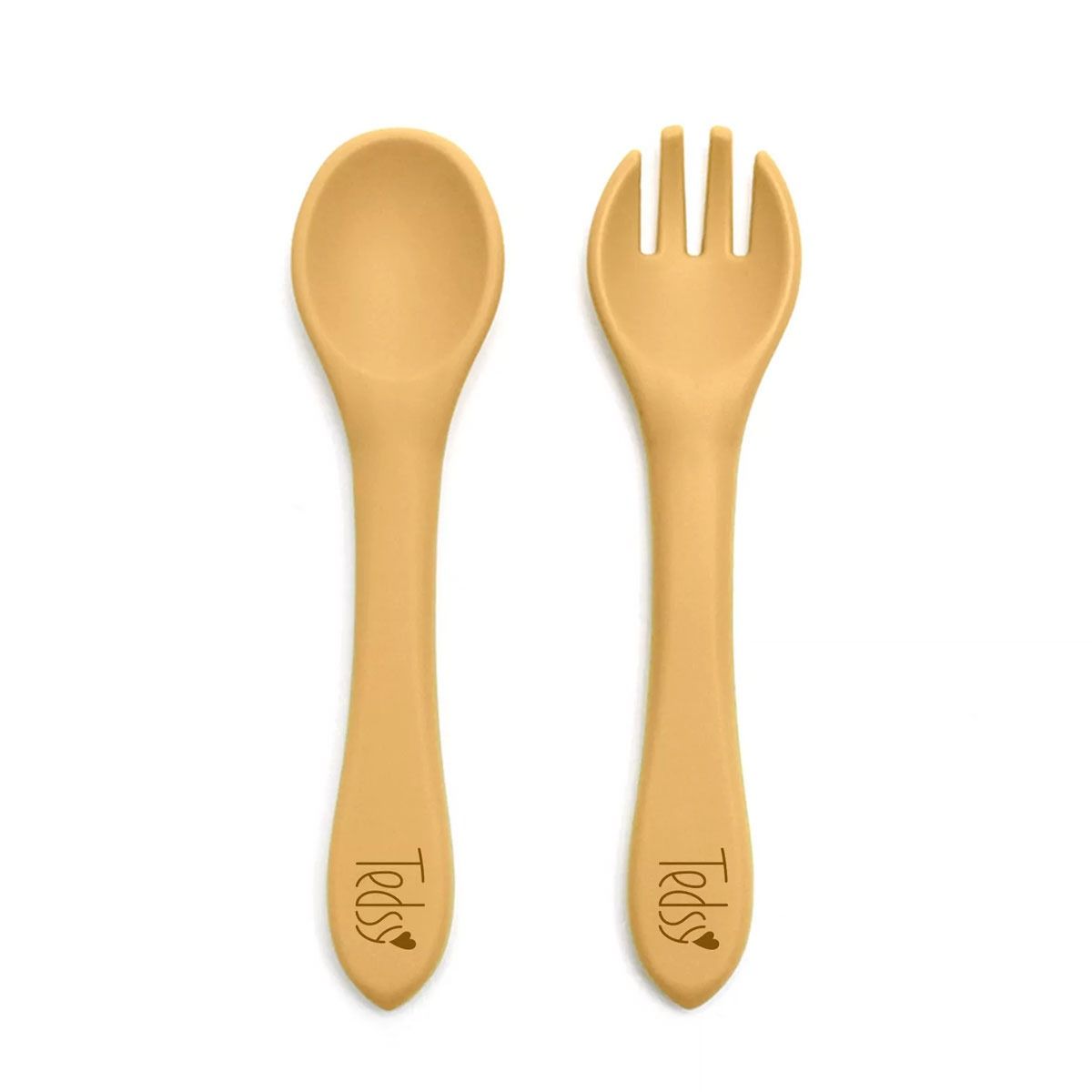 - Лигавникът с дълбок джоб улавя падналата храна, а приборите са с идеален размер за малки ръчички.
