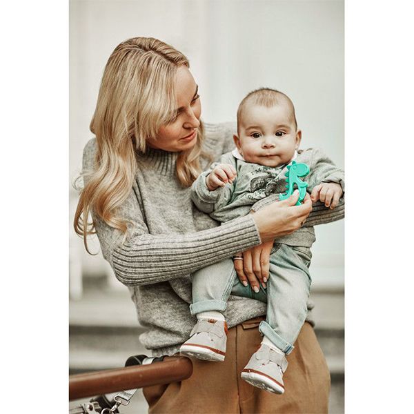 - Създадена от мек, гъвкав и безвреден силикон, който се адаптира към бебешките венци.