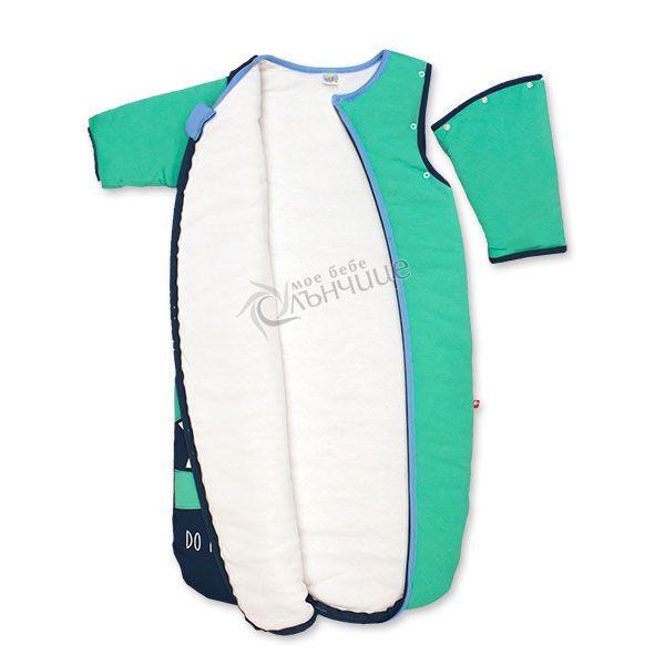 - Снабден с цип по цялата дължина и подвижни ръкави, който се отстраняват с помощта на копчета тик-так.
