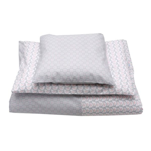 - Комплекта включва горен плик за завивка, възглавница със сваляща се калъфка и обиколник.